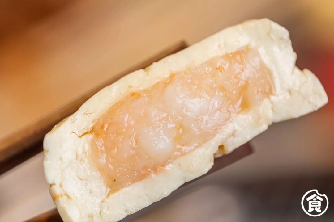 柔软细滑的豆腐包裹着富有弹性的虾肉