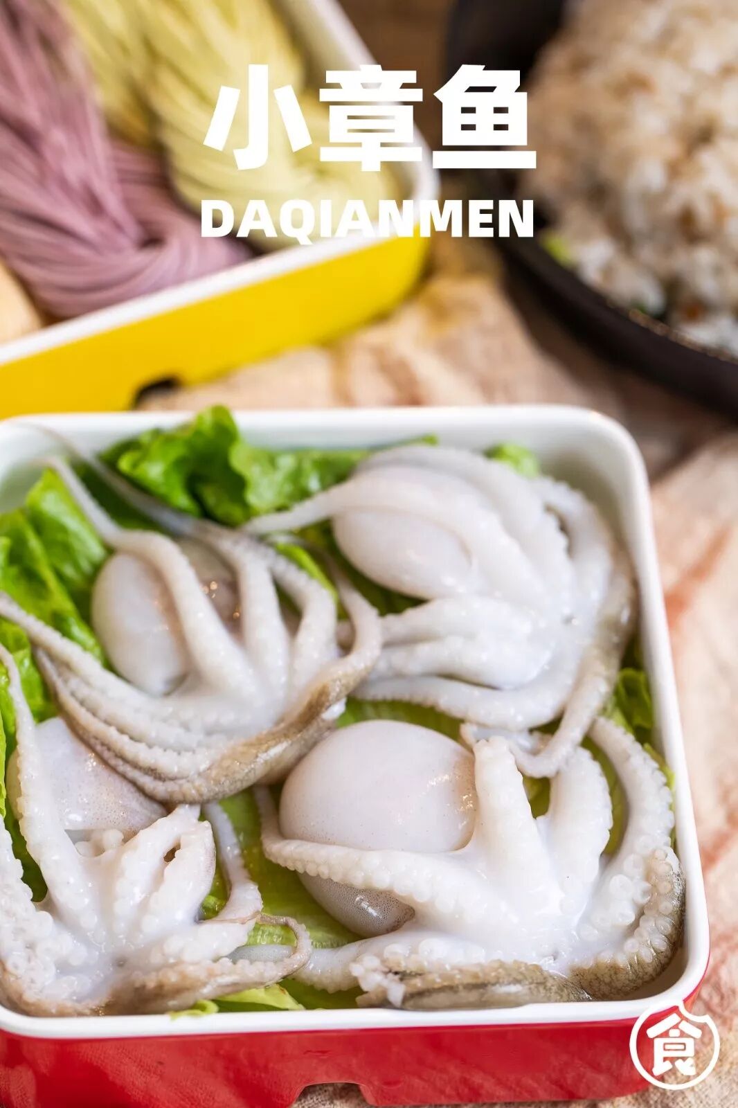 小章鱼、意式黑椒肠、手工蔬菜面、雪花球