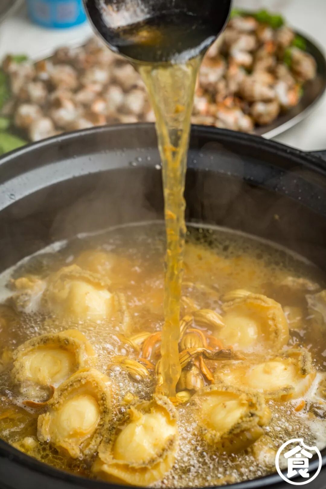 让鲍鱼、花螺、鸡肉的精华都化在汤汁里面