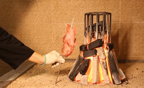 使用“炉端烧”炭火炙烤