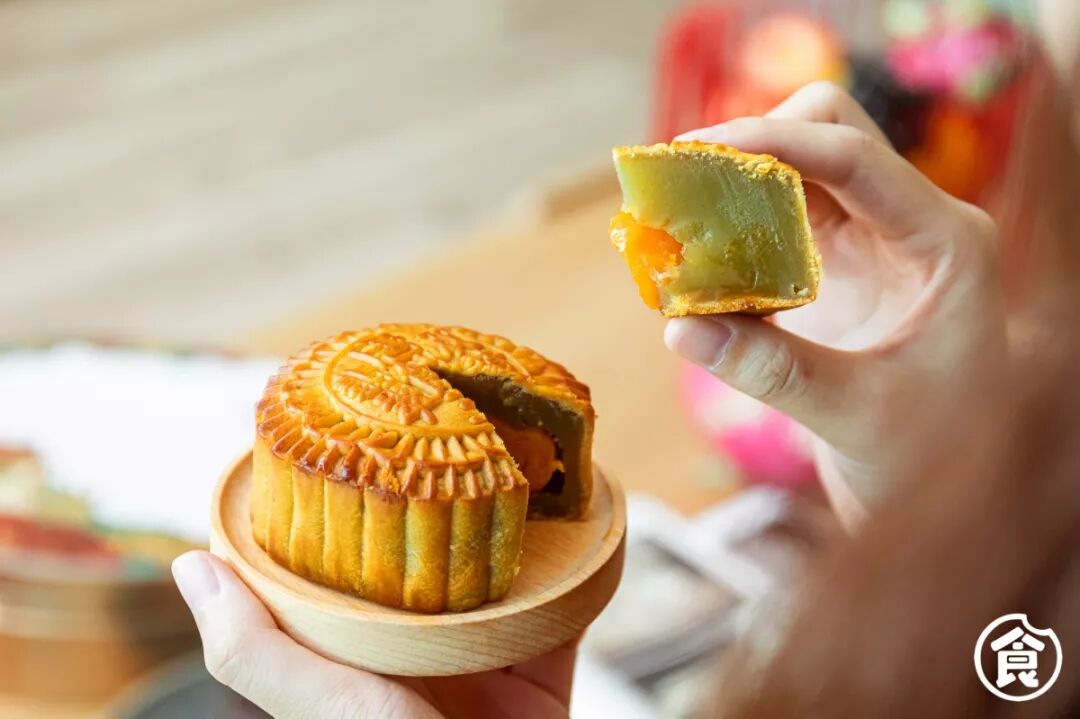那烘得金黄的月饼皮,包裹着奶香蛋香浓郁的奶黄馅
