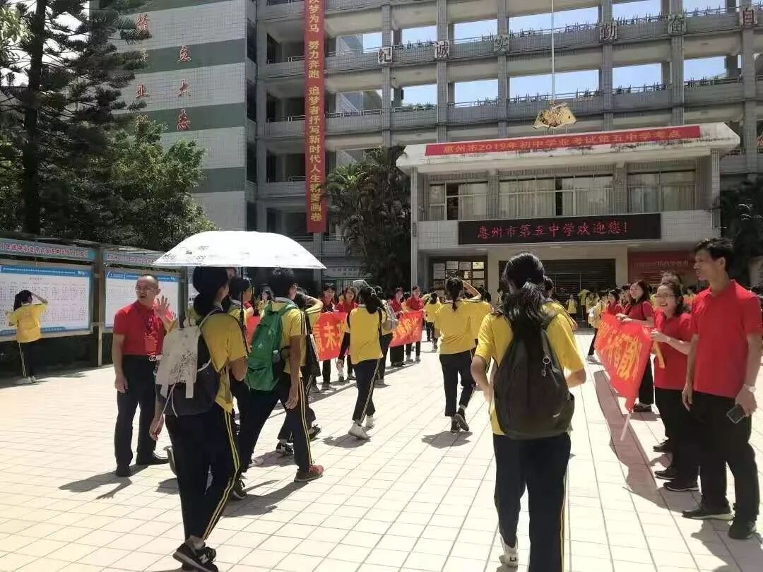 他们身穿红衣现身校门为学子加油鼓劲