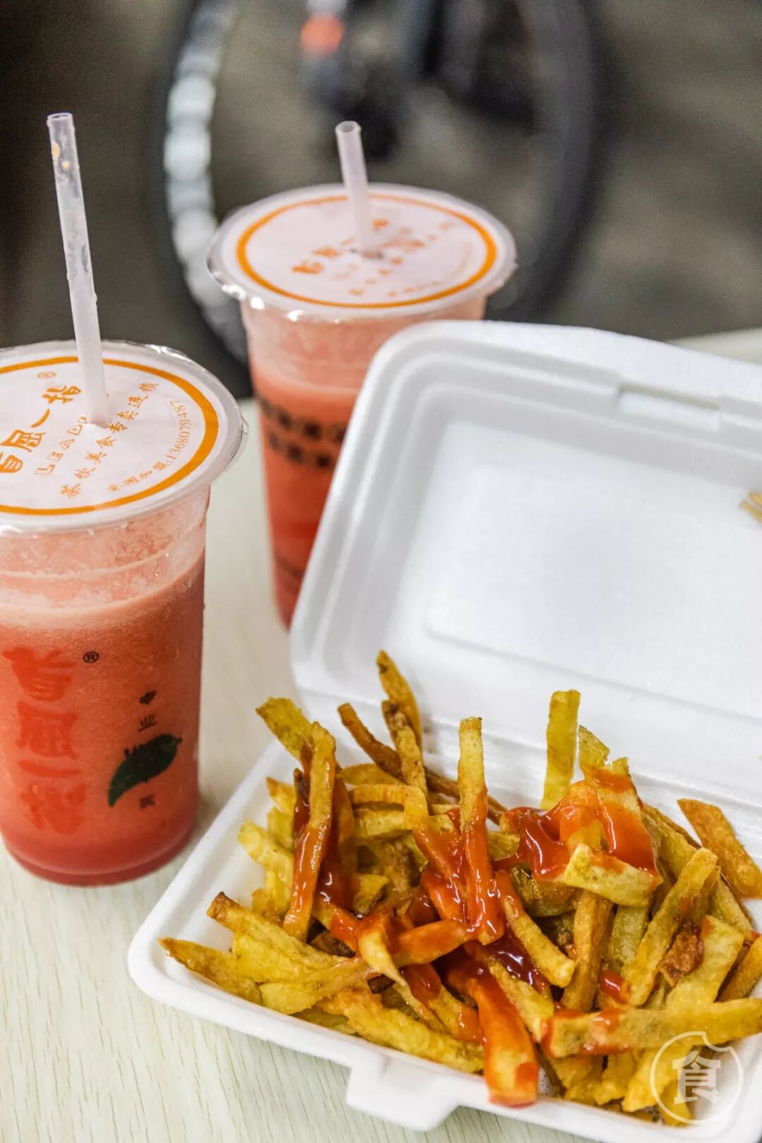 放学了,总和小伙伴点杯西瓜汁加炸薯条