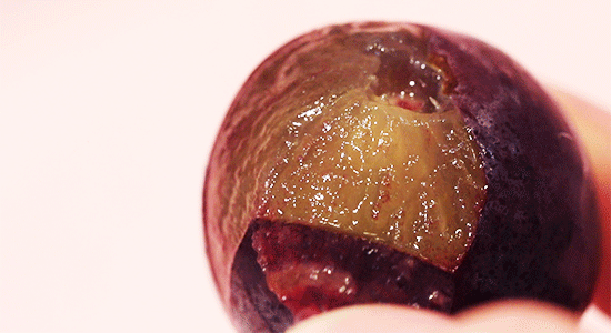 把它吸到嘴里轻轻地咬开,果浆迸裂
