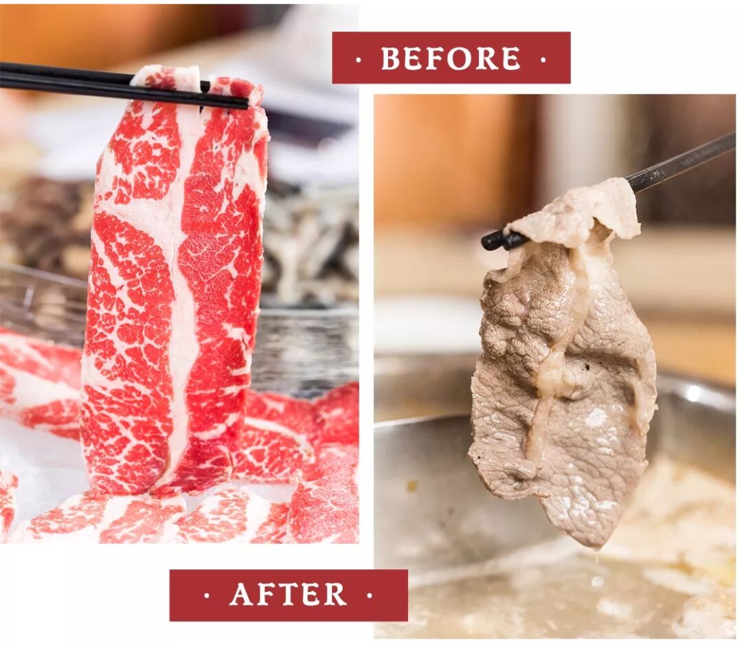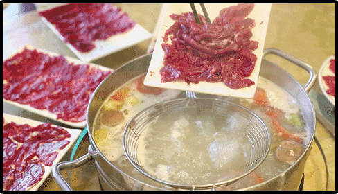 只需要10秒钟,配合“三吊水”的烫肉手法
