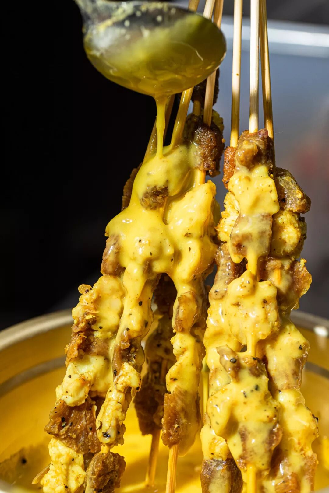 确保每一块羊肉都蘸裹上了这秘制的酱料