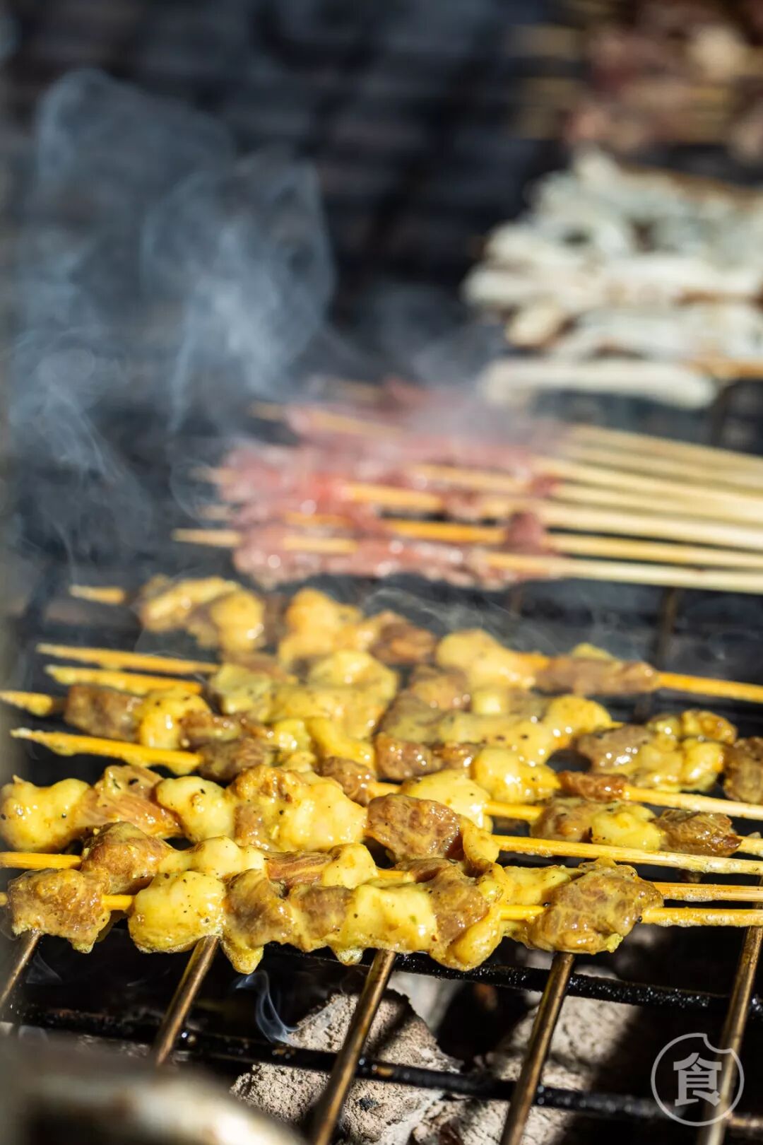 在整个烧烤过程中炭火的烟熏味也渐渐沁入肉里