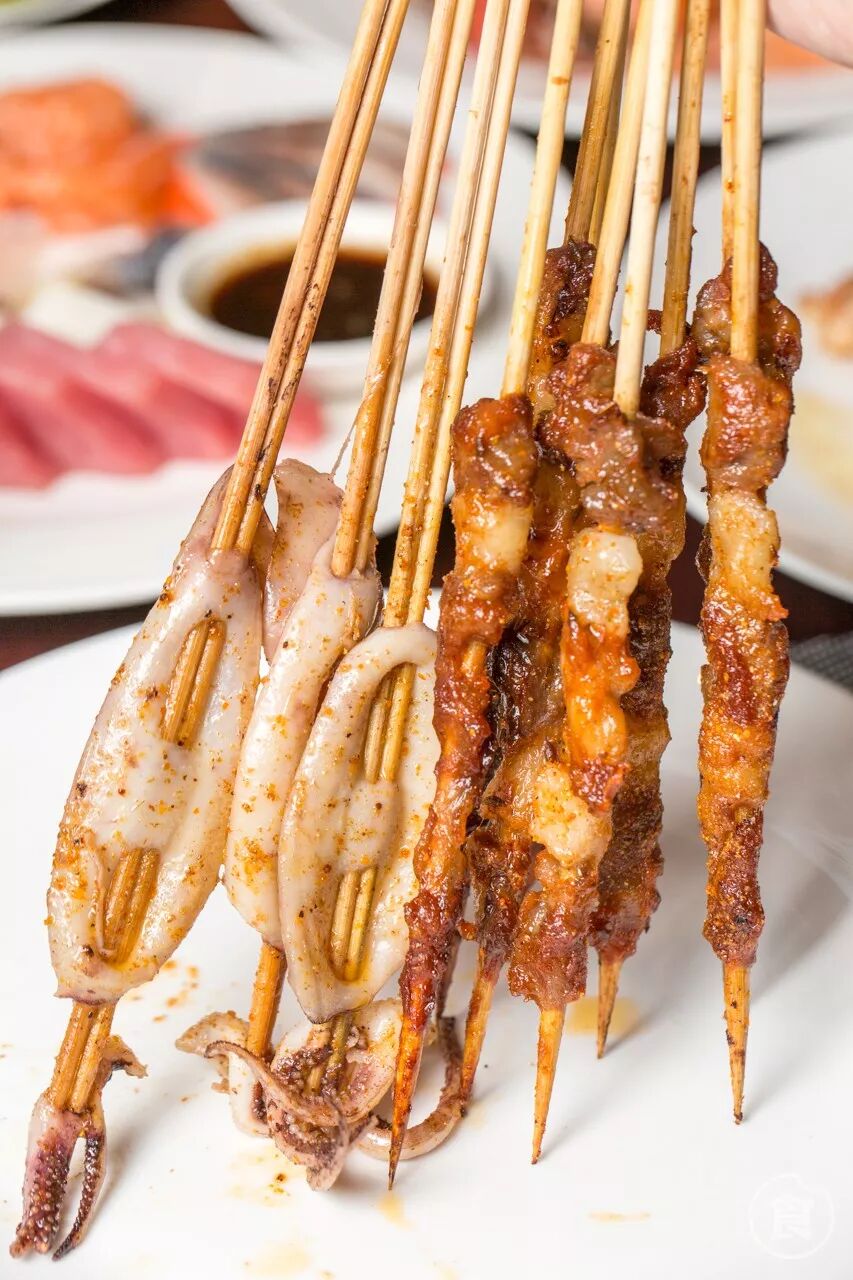 推荐铁板烤串!烤鱿鱼羊肉串成把拿