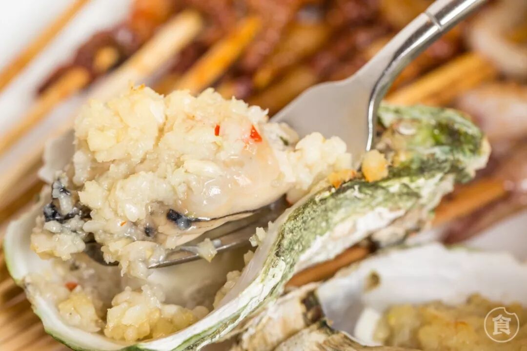 耐心把蚝肉脱壳,连带蒜蓉入口