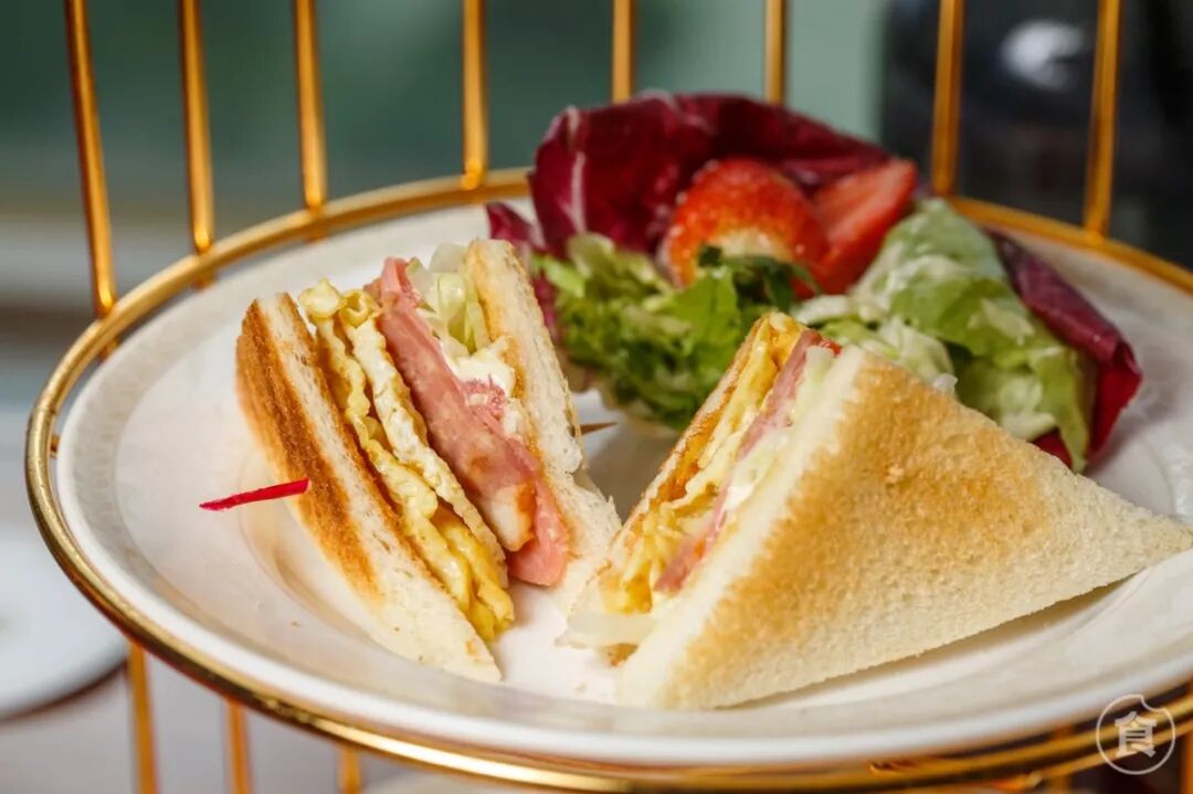 不同于一层,第二层放置了三明治和果蔬沙拉