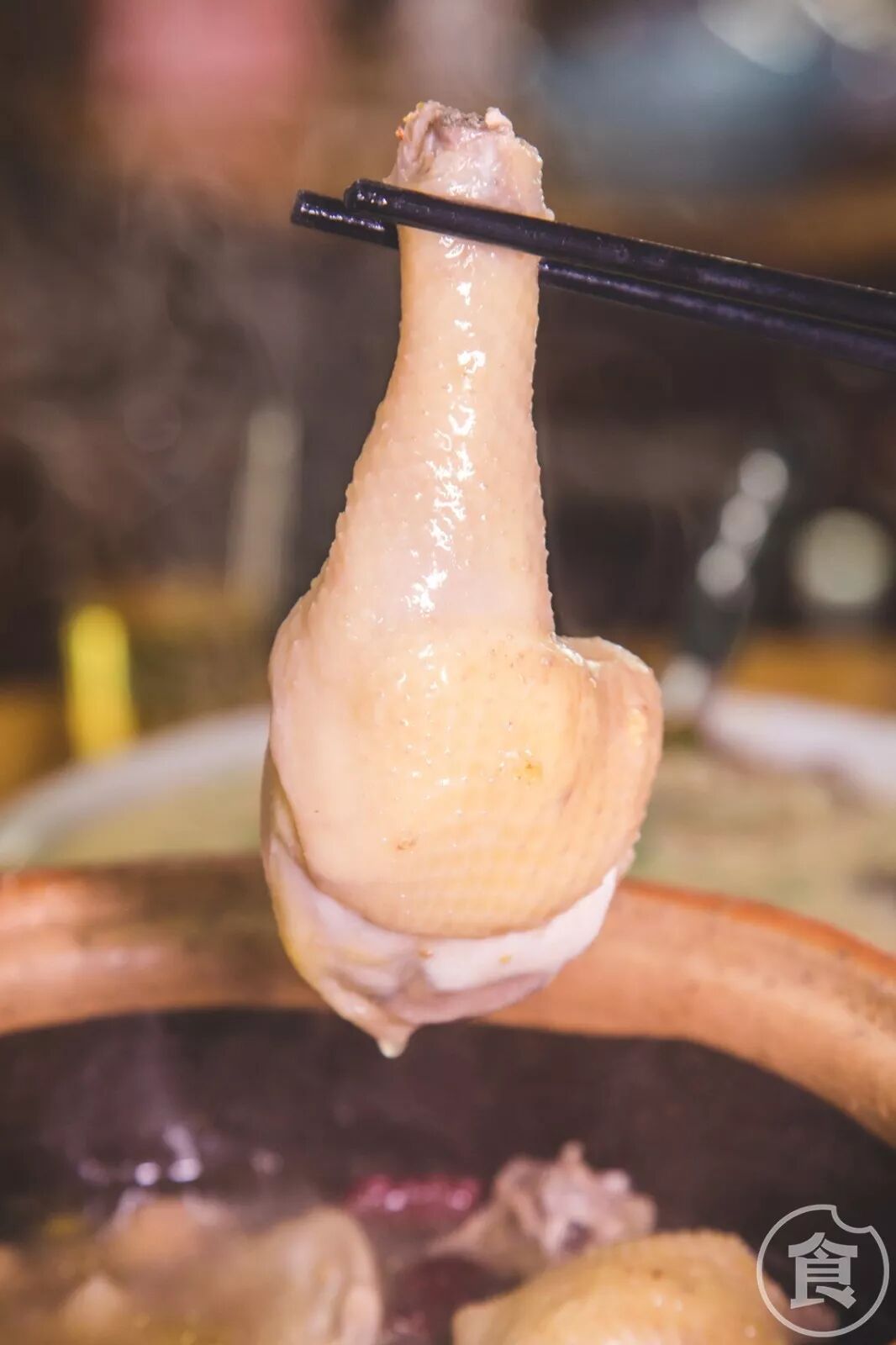 喝够了汤,再吃大鸡腿。鸡肉渗入了甜醇的黄酒,吃起来味道微甜。肉质厚实的鸡腿肉煮得正好,连皮带肉撕下总叫人满足~