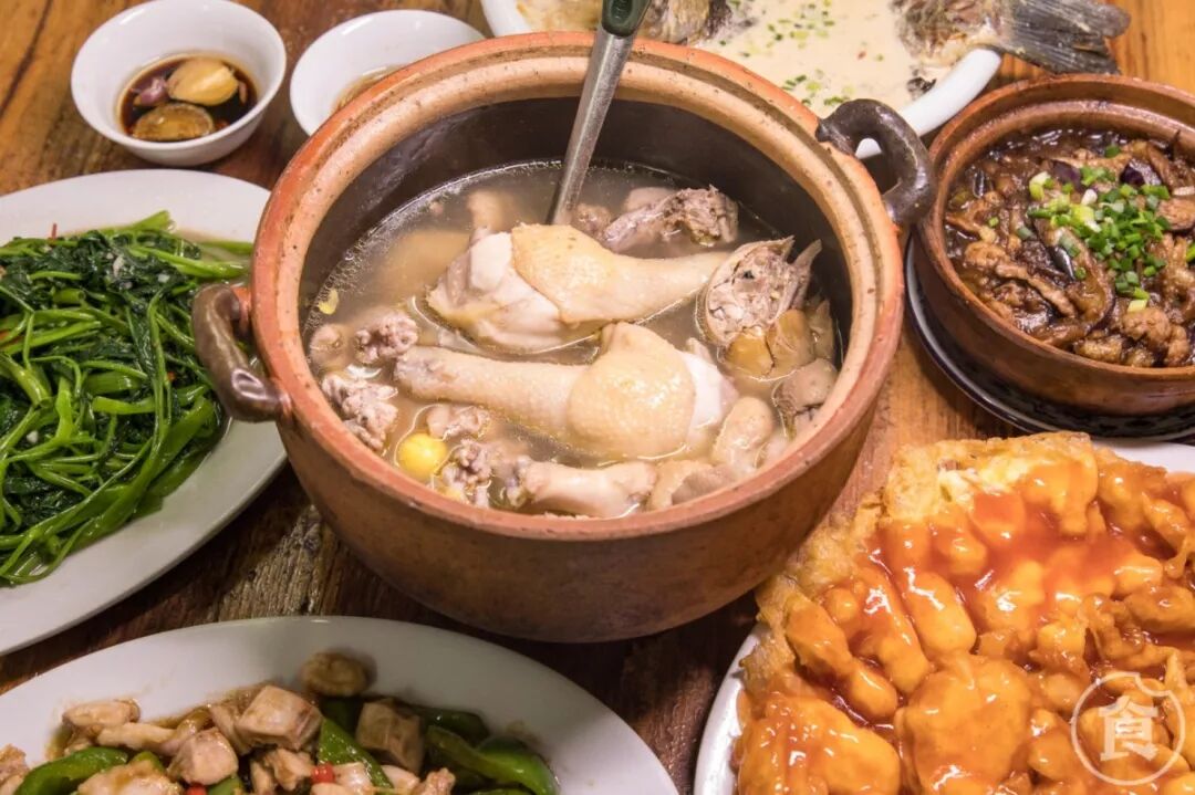 家里做菜喜欢用砂煲。因为保温持久,等人齐到家后饭菜也能留有余热。德记最出名的也是那一锅锅煲仔菜,而药材炖鸡煲几乎每桌必点。