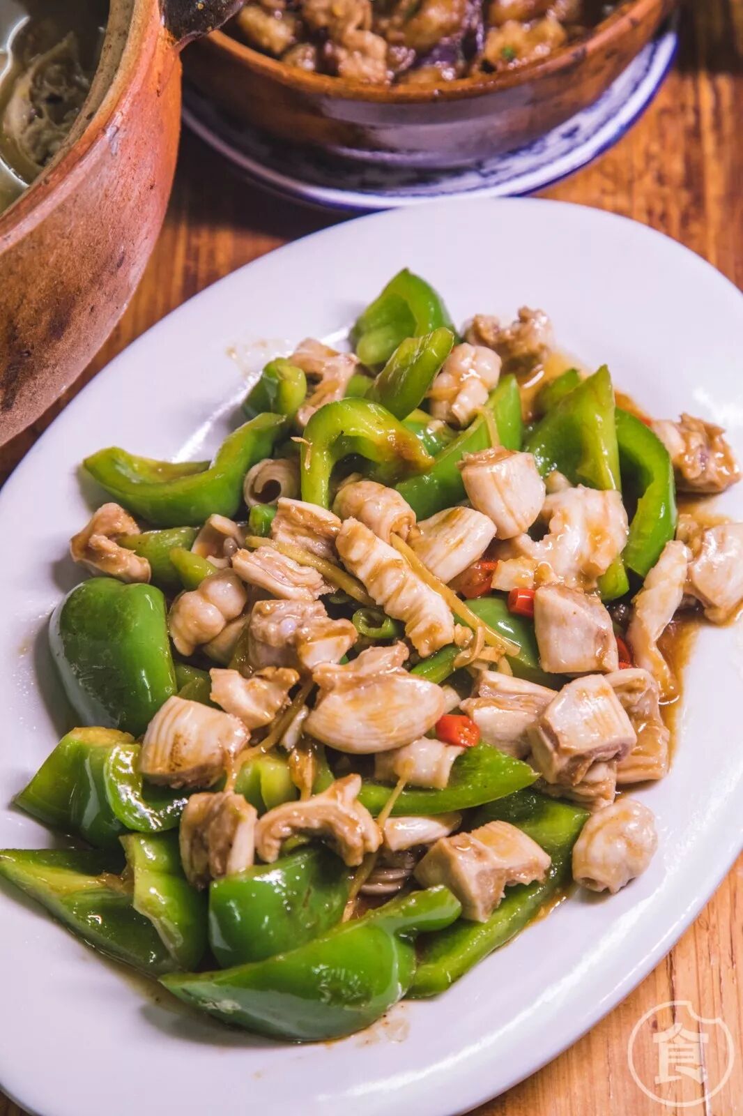 – 青椒炒生肠-