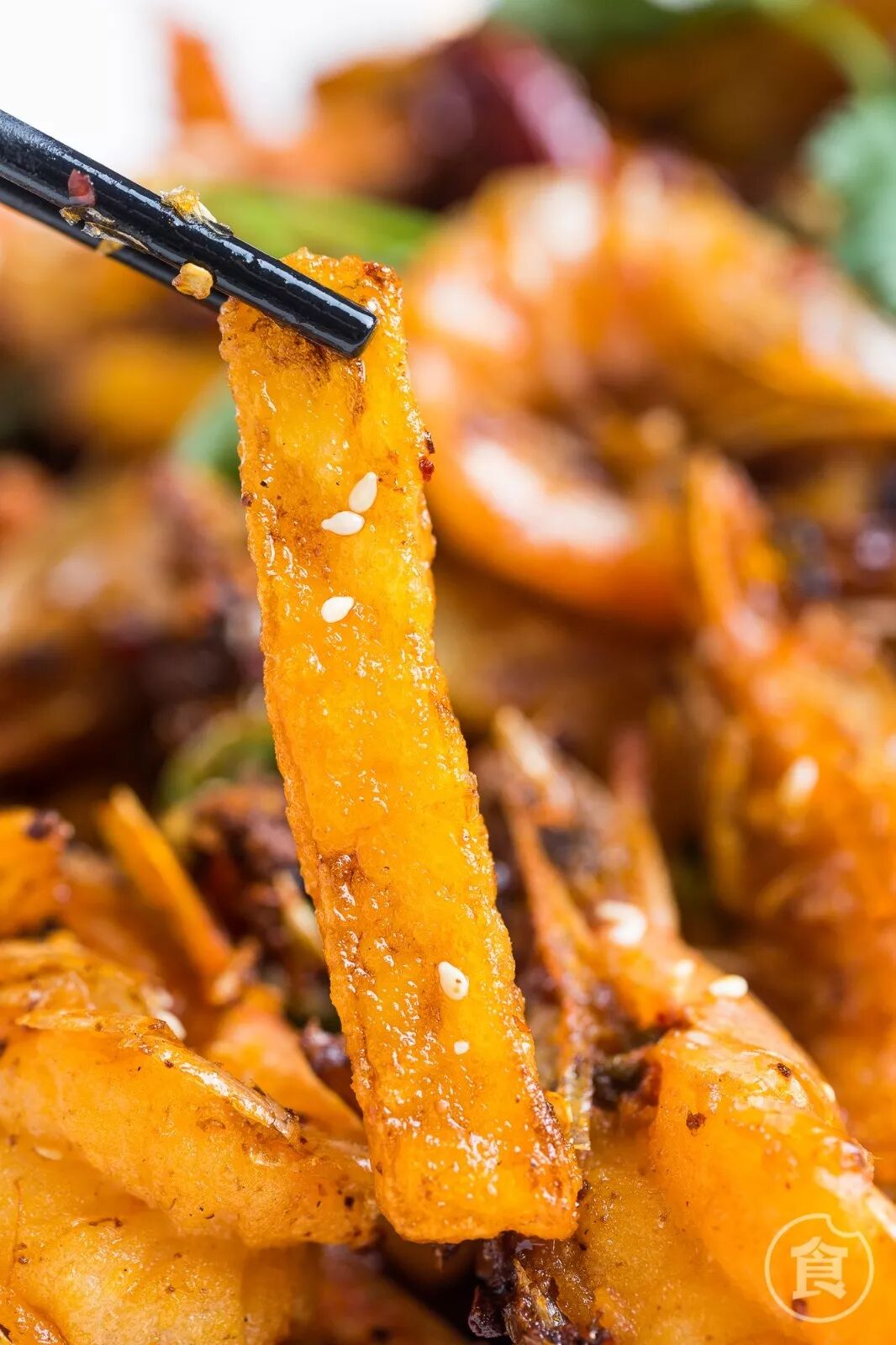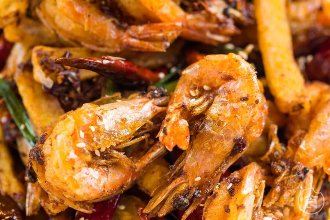 弹嫩多汁的虾肉包裹着香辣的红油