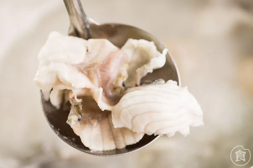 接着一定要感受这爽脆弹牙的鱼肉。鱼片放进沸腾的粥底,当鱼肉迅速收缩,颜色由透明变白就可以开吃。