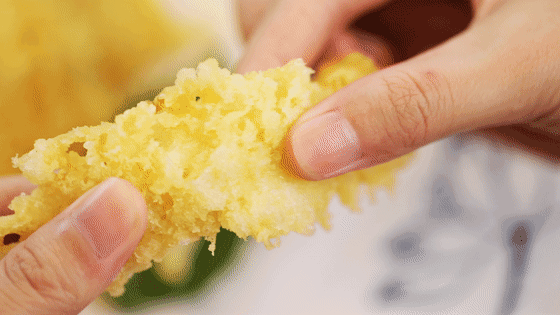 将大虾、蔬菜、豆腐等食材裹上面衣后进行油炸