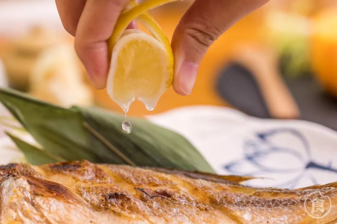 柠檬汁的微酸与鱼肉的鲜甜、鱼皮的焦香结合在一起