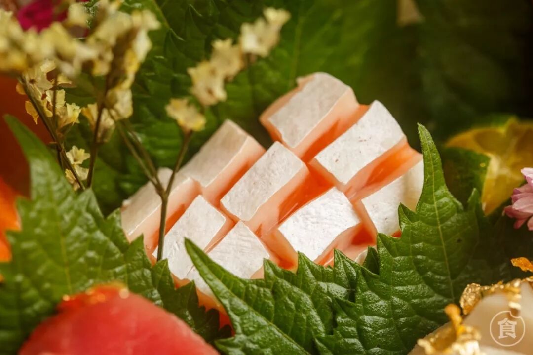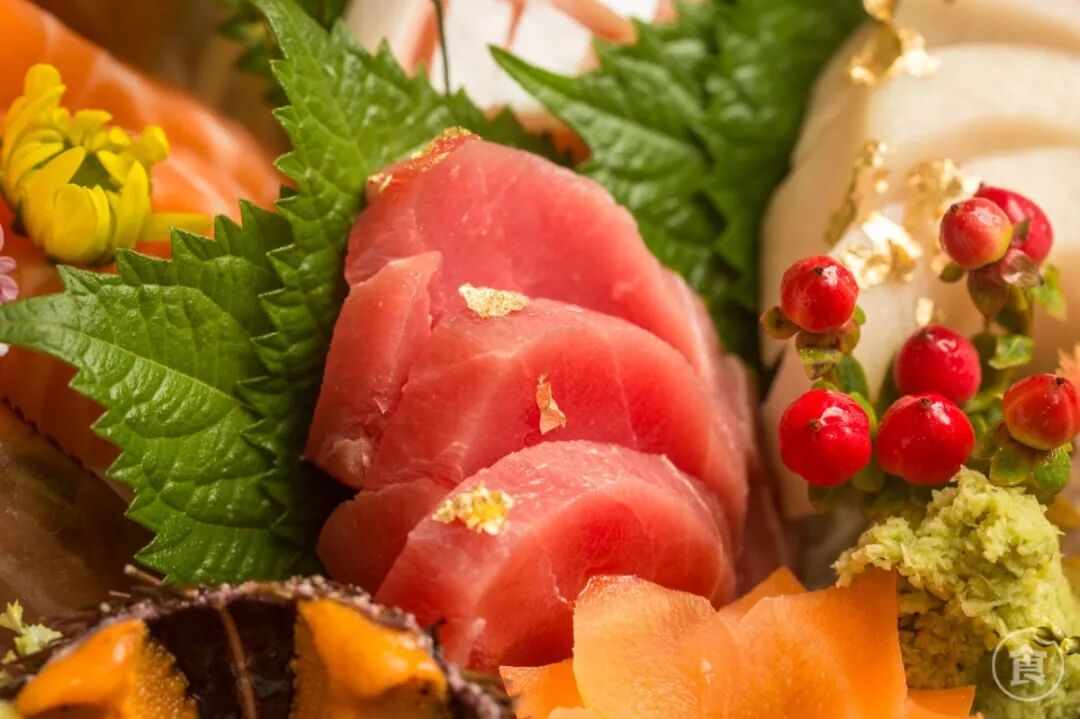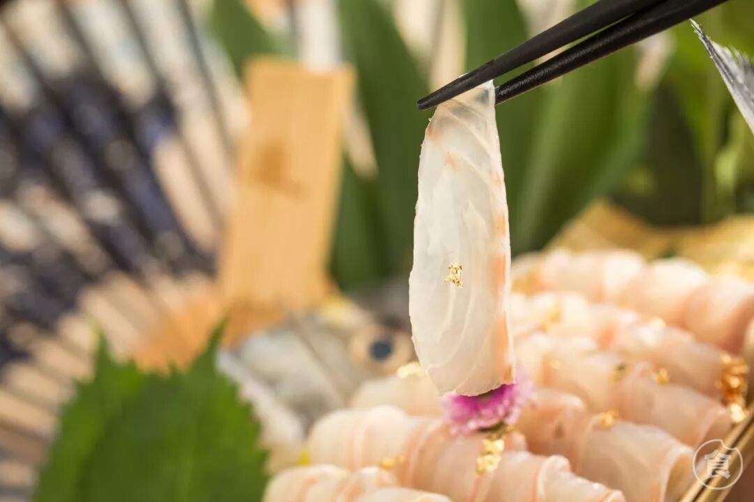 薄切的鲷鱼整齐排列, 光看卖相就极其诱人