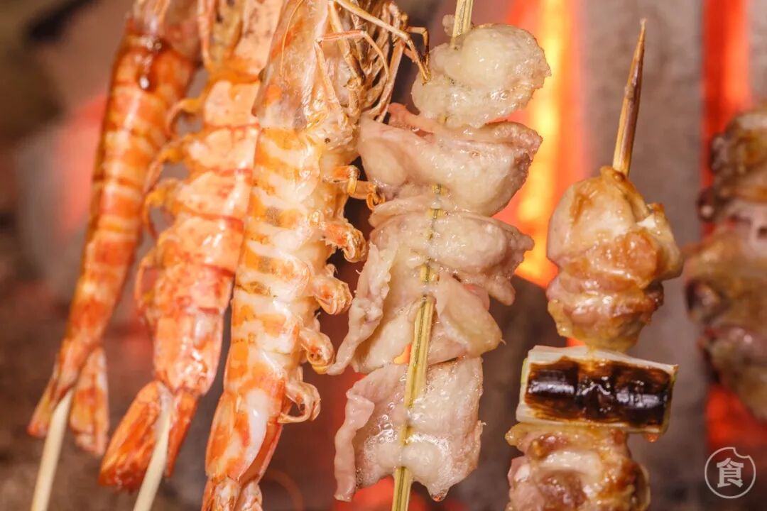 由高达900℃的炭火烤制而成的新鲜海鲜