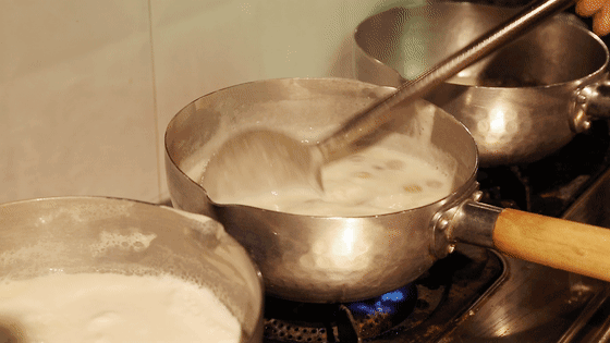 一排整齐的铝锅,一碗热气腾腾的加料豆浆