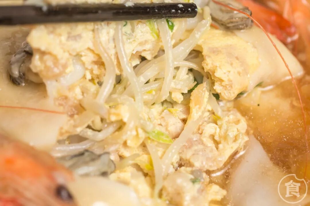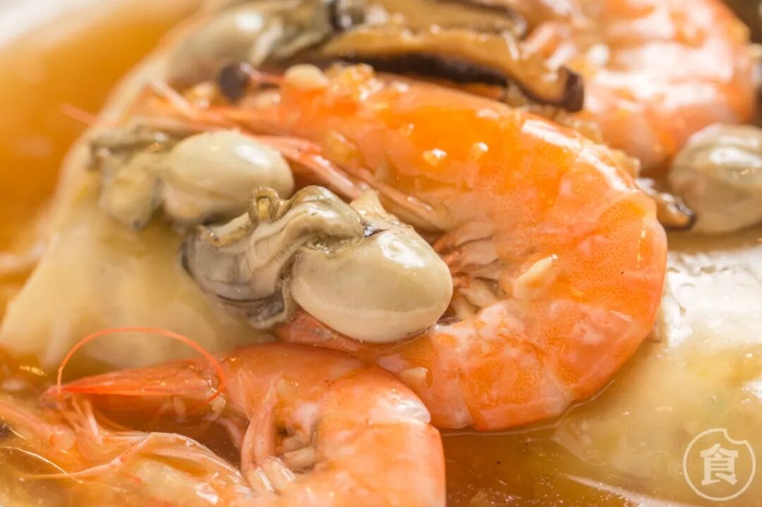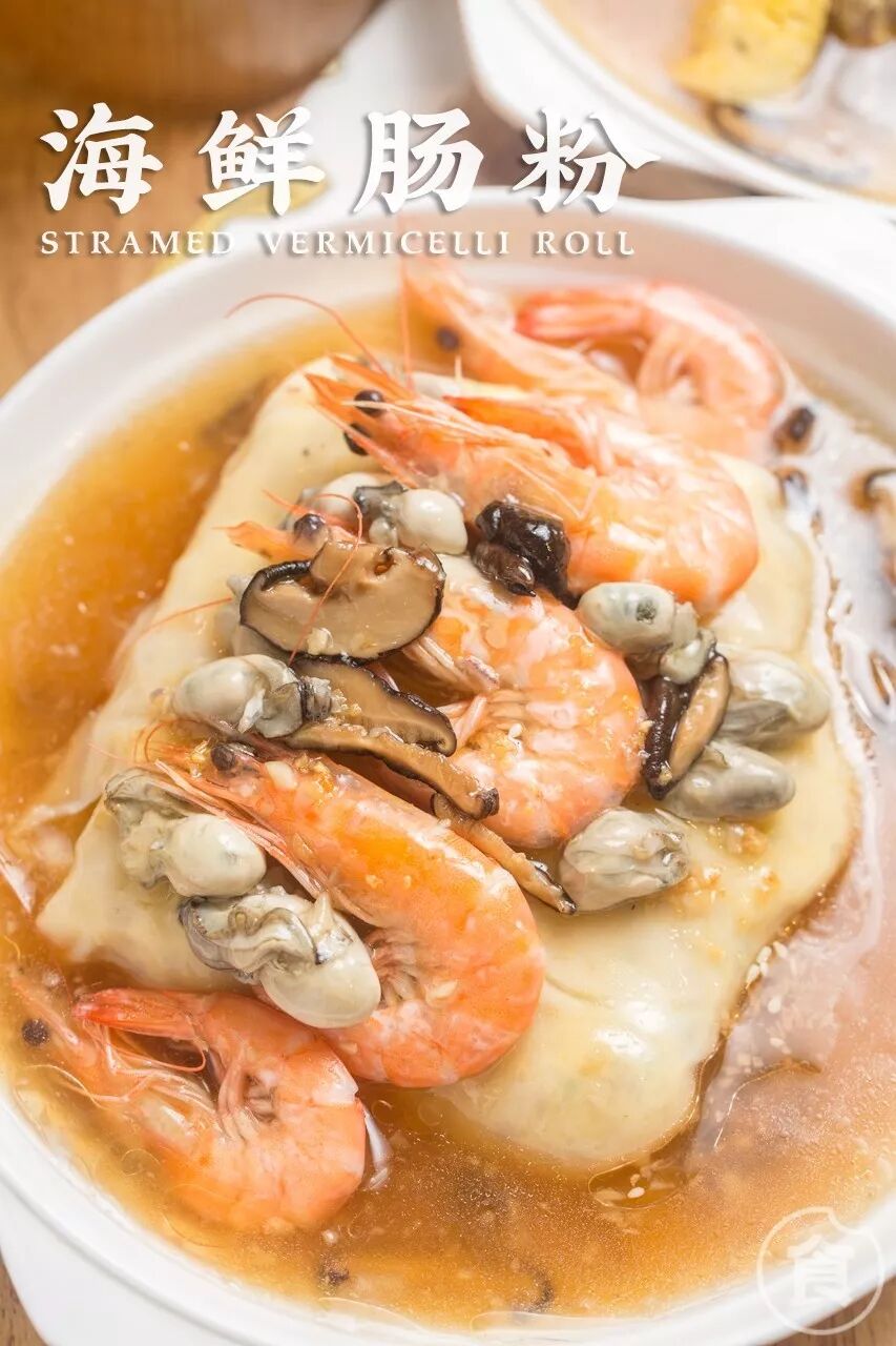 我们点的海鲜肠粉,面上满是鲜虾和生蚝