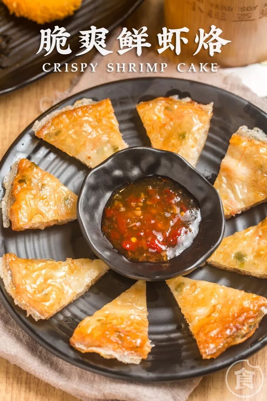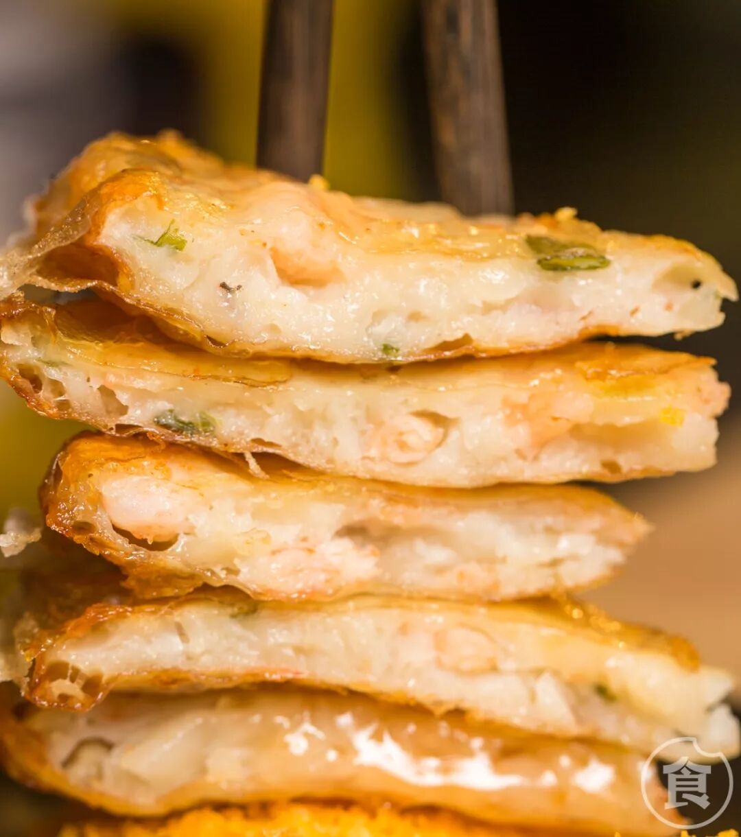 脆皮包裹的鲜虾烙,内里的肉饼很有韧劲
