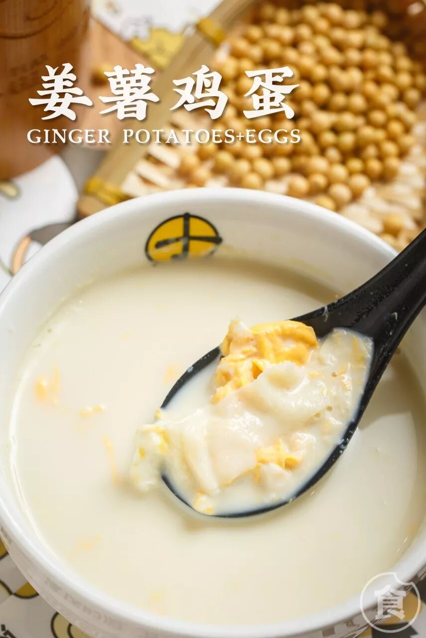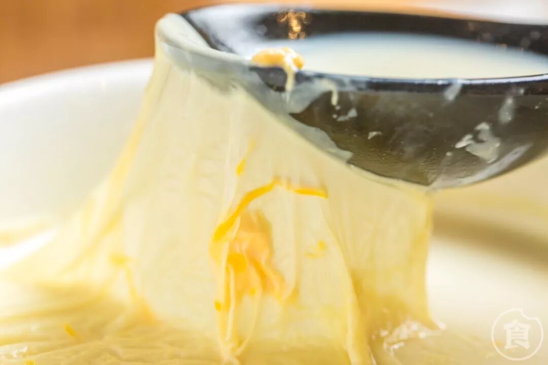 粉粉的蛋黄浸泡了豆浆,蛋香混合豆香