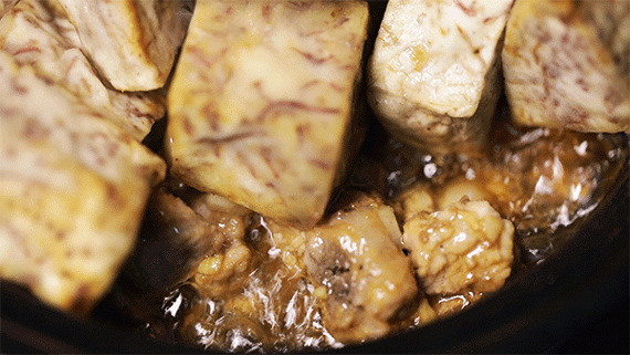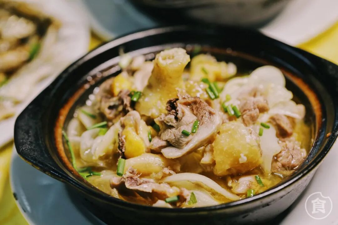 掀开盖后不仅能闻到经过秘制而成的酱香,还有让人垂涎欲滴的肉肉气息。撒上的葱花后更添风味,大块大块的香芋和温暖的菜色都让人很有食欲。