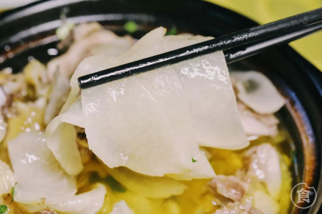 这道菜足够“硬”!看似以鸡肉为主的一煲靓菜,其实抢眼的不是鸡而是看似平平无奇奇的萝卜杠!清水冲洗淡腌制后的盐份,放入鸡煲里,吸收已经翻滚沸腾的鸡汤,萝卜爽脆多汁到爆炸!