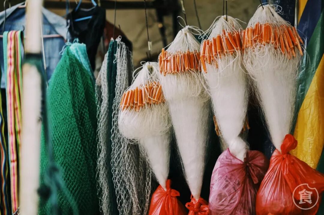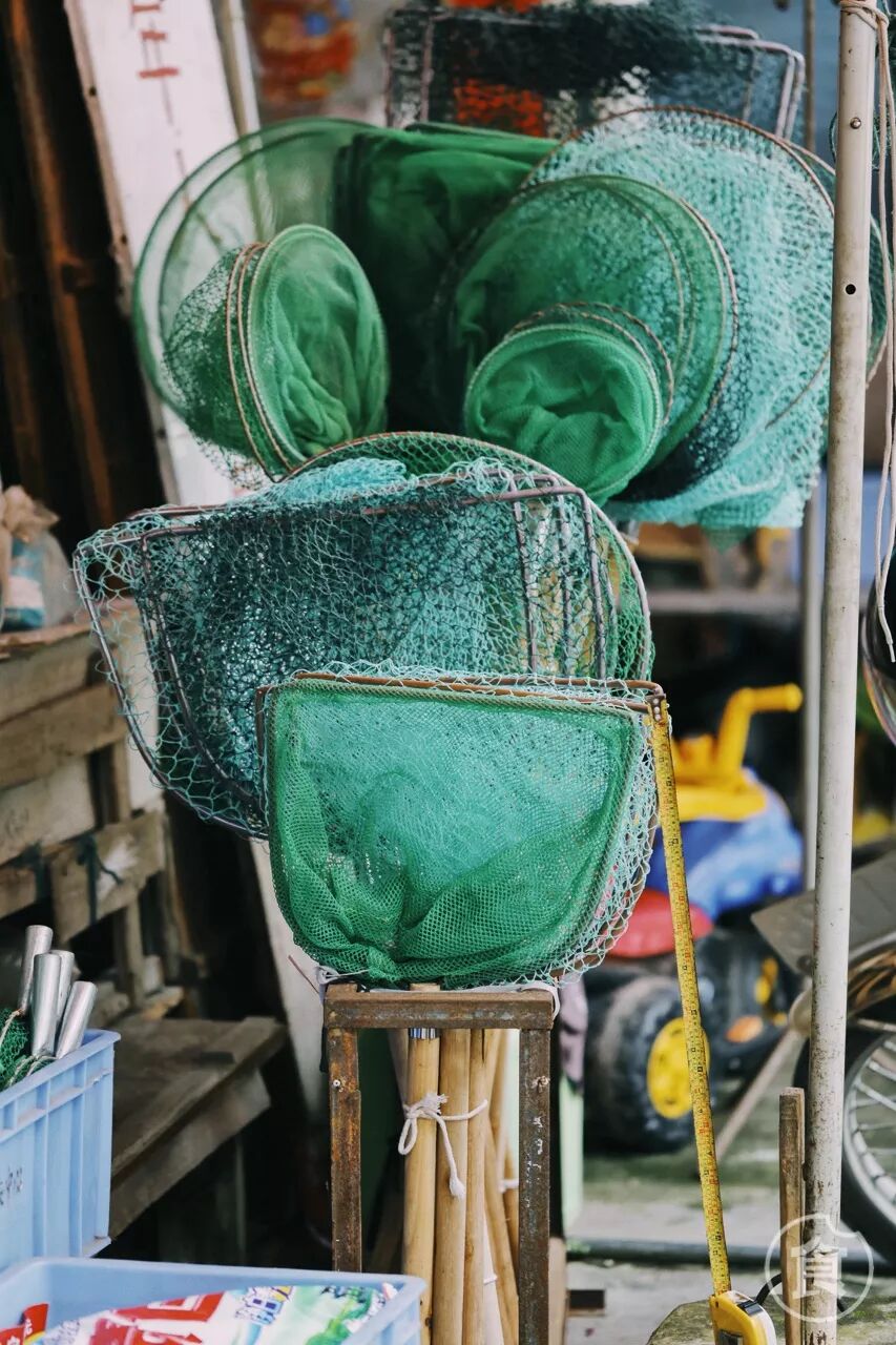 街道上有很多售卖渔具的店铺,这是专属水口的街道特色。小编没有去到好时候,距离发船开鱼还有几天,吃不到这人间美味河鲜了。