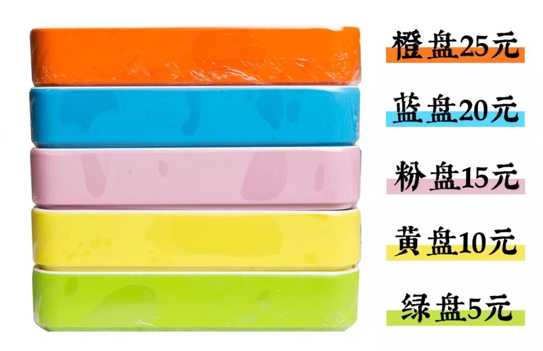 还有满目琳琅五种颜色盘子的火锅菜可以选择