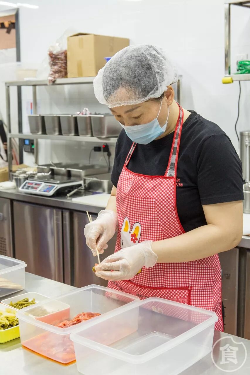 阿姨说:“这动作可不能快,不然肉就包不住了”