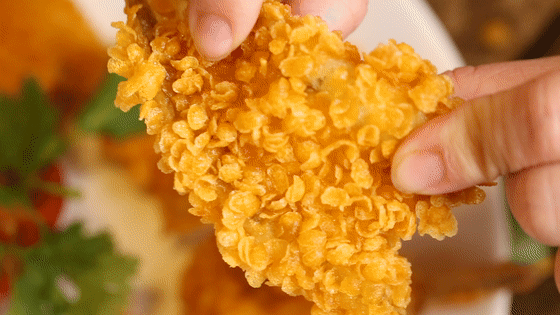 嫩滑的鱼肉与酥脆的麦片混合一起