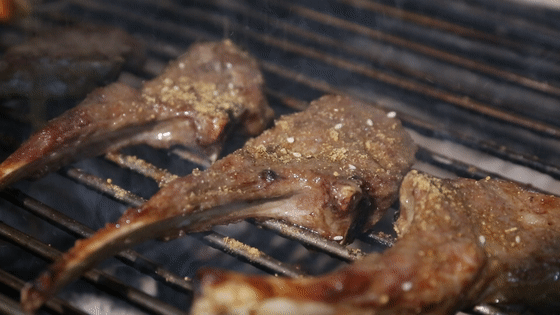 经过简单处理后,进行烤制的羊排