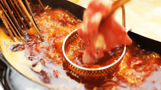乖乖出来被吃掉吧!烫好后的肥牛弹性十足
