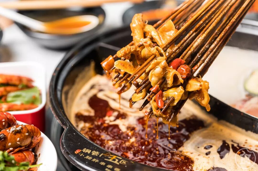 抓一大把串串下锅,看着它在红滚滚的锅里沸腾