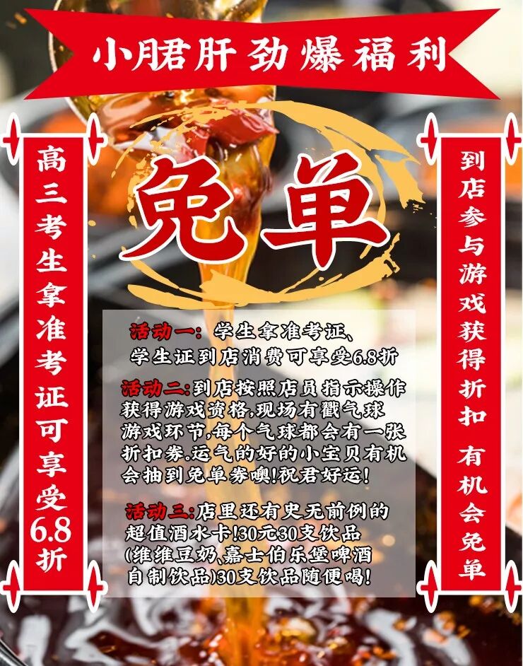 ◎ 学生拿准考证、学生证到店消费可享受6.8折