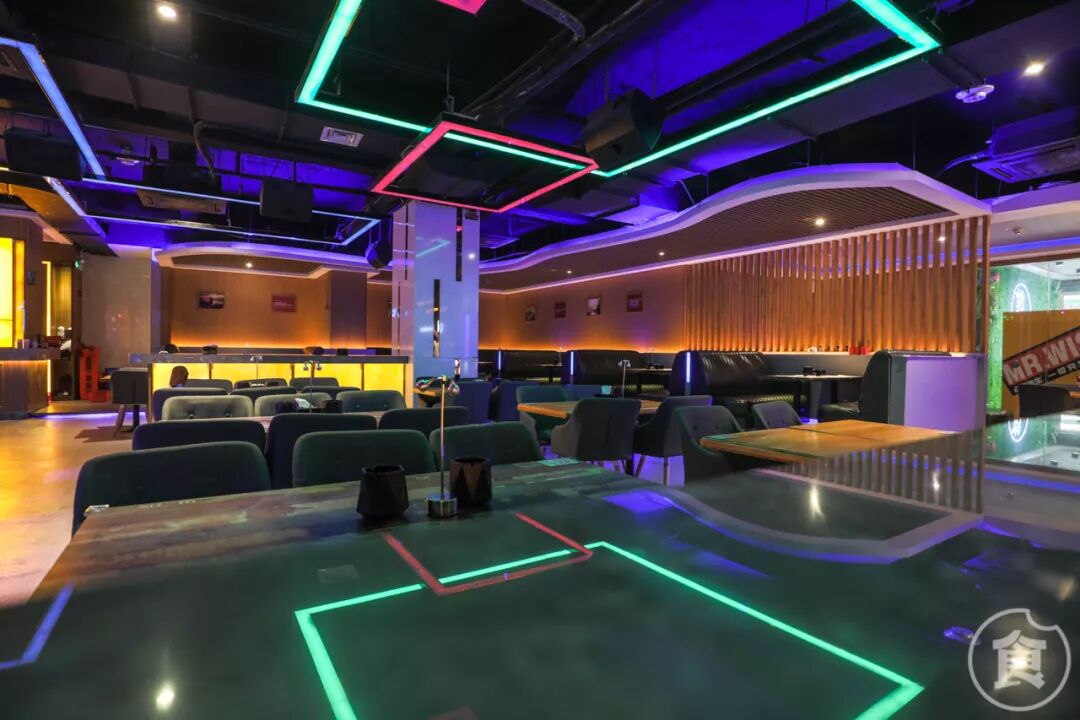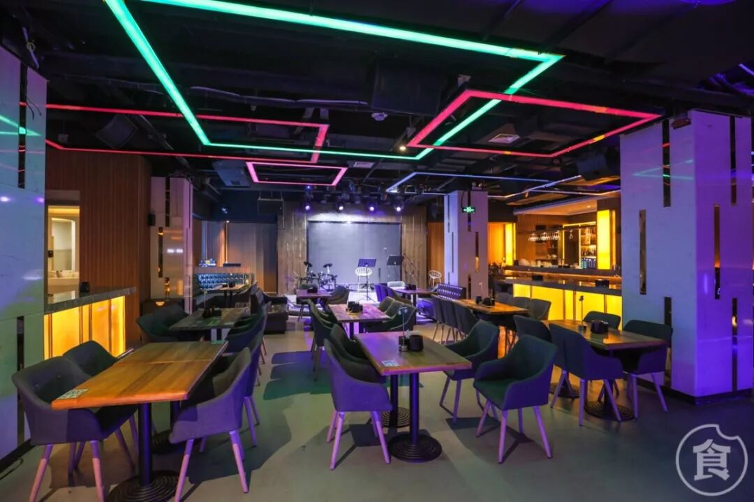 穿过迷幻的走廊,走进音乐餐吧,大气低调奢靡的色调映入眼帘。很喜欢店里彩色的霓虹灯饰,让空间更具时尚感。