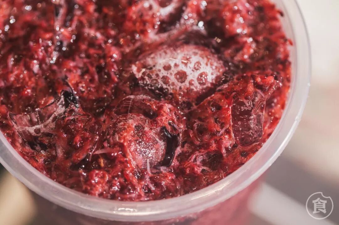 厚层果肉轻浮于茶面,轻轻搅拌均匀