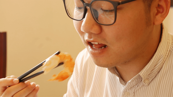 把大大个的虾肉一口吃掉的