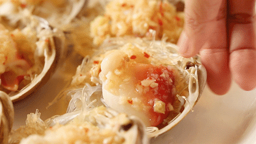 轻轻拨开贝肉上的蒜蓉末