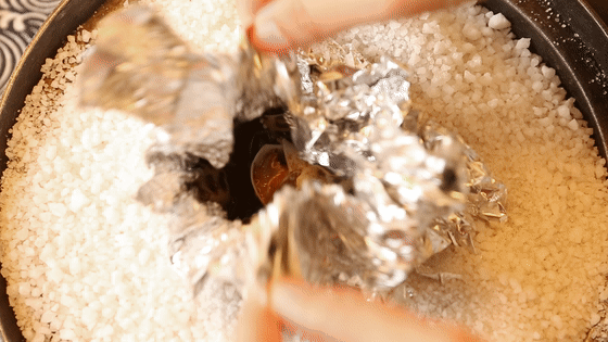 用粗海盐包裹住,鲜味更加浓缩