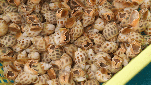 盐焗后的花螺口大多已经脱落