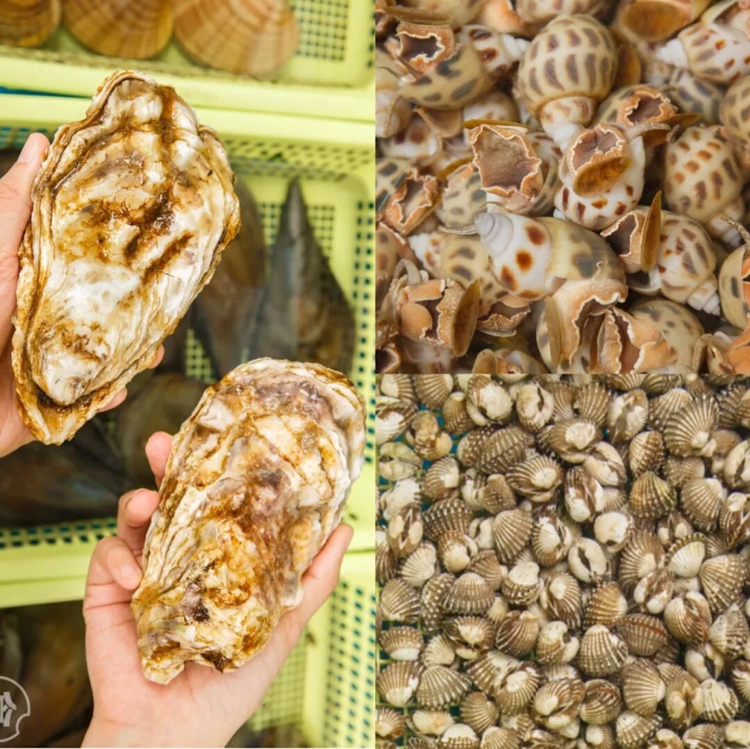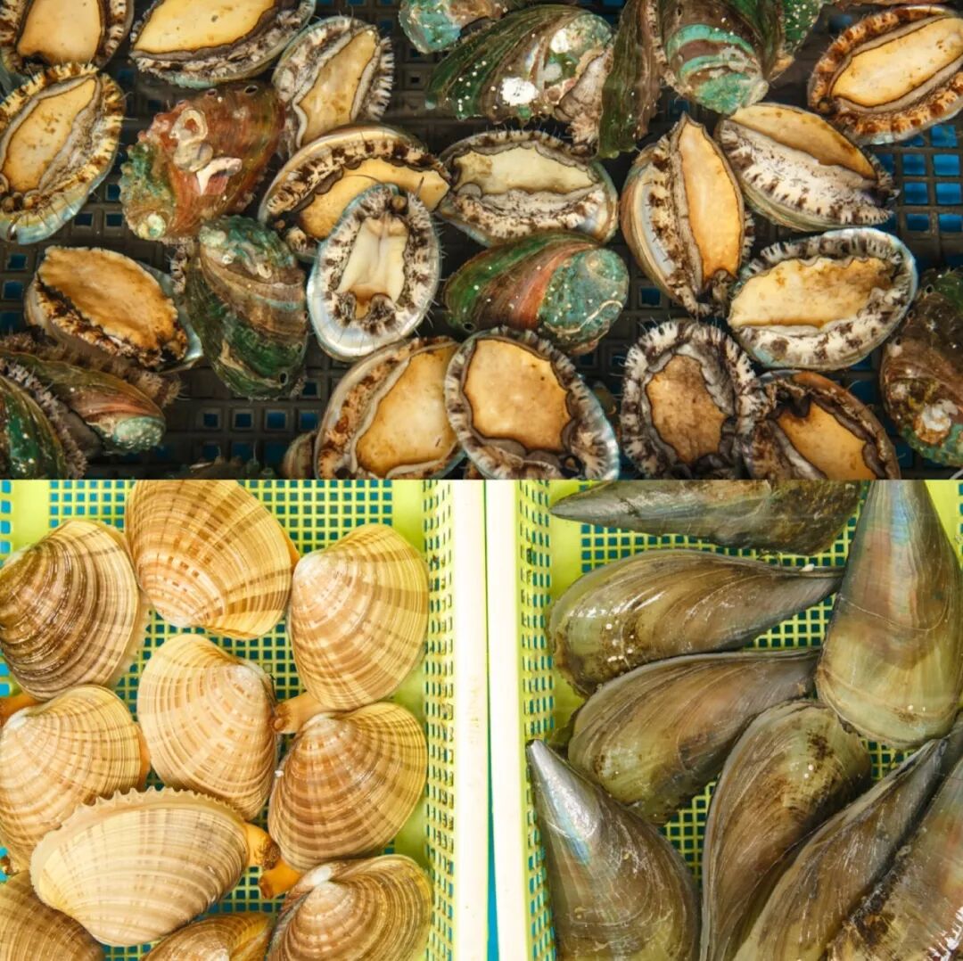 花螺、北极贝、生蚝、象拔蚌、圣子皇