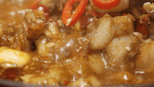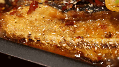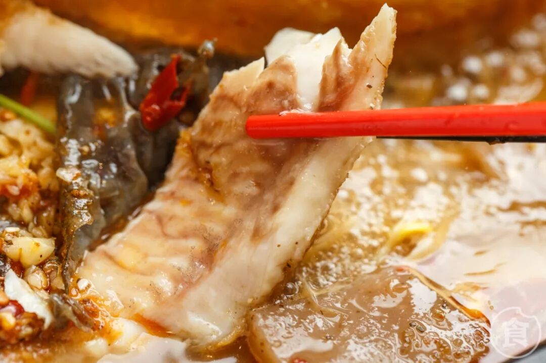 推荐巴沙鱼,只有一条大骨,没有小刺,能感受大口吃肉的快感。一整条鱼提前炙烤,汤汁滚滚翻腾,鱼骨附近的肉格外焦香入味。