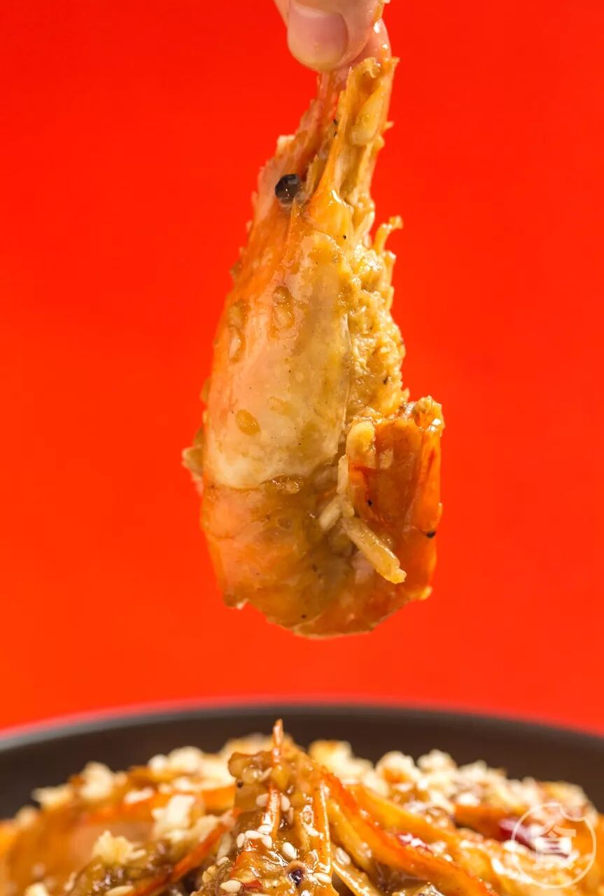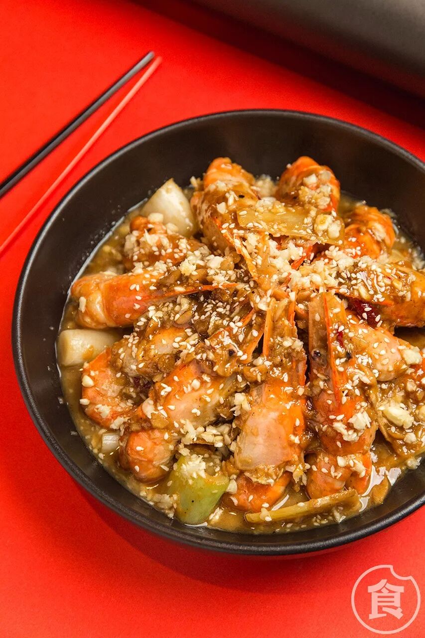 如果你觉得吃小龙虾很麻烦,那我要强推罗氏虾给你。不用上手,轻松吃肉。选用生猛新鲜的罗氏虾,开背入味,大火爆炒,裹满浓厚蒜汁。我宣布,我要变心了!