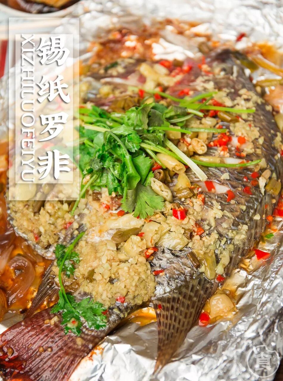 原来罗非鱼也能这么吃!先杀新鲜罗非鱼,在上烤炉之前经过腌制和调味,再用锡纸包裹烤熟。掀开时蒜香和鲜香四溢,鱼肉滑嫩多汁,味道也让人惊喜,适合在下班时约上好友一起分享。