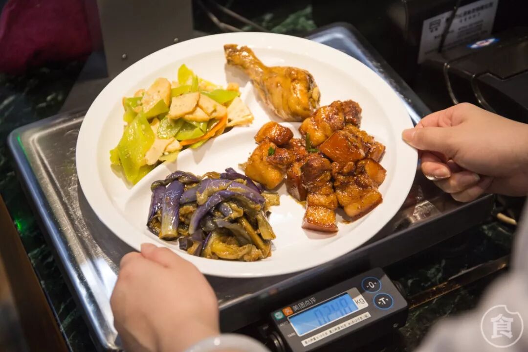 这里的结算方式很特别,根据你的重量结算,不分荤素,都是一样的价格。加上抵用券,人均十元左右,就能吃到菜色如此丰富的一餐啦!