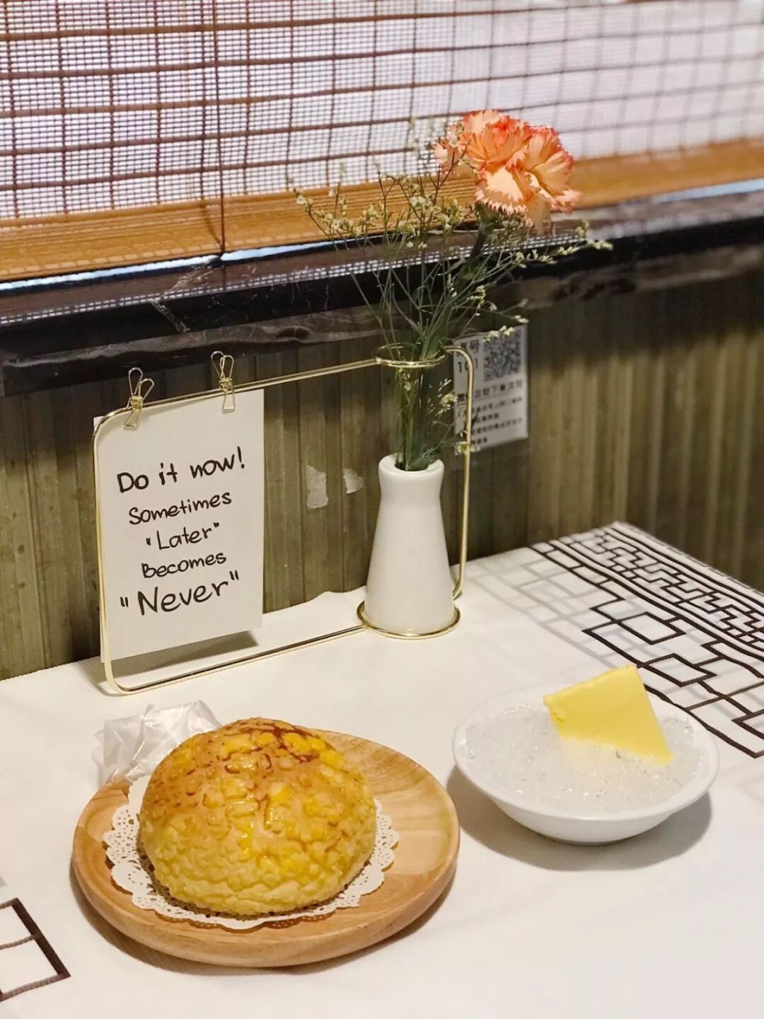 冰火两重天,热热的菠萝包中间夹一块冰黄油
