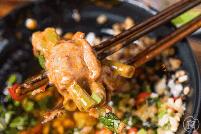 紧实有嚼劲的墨鱼肉沾染了满满的鲜辣,可以蘸醋碟提鲜,很回味。